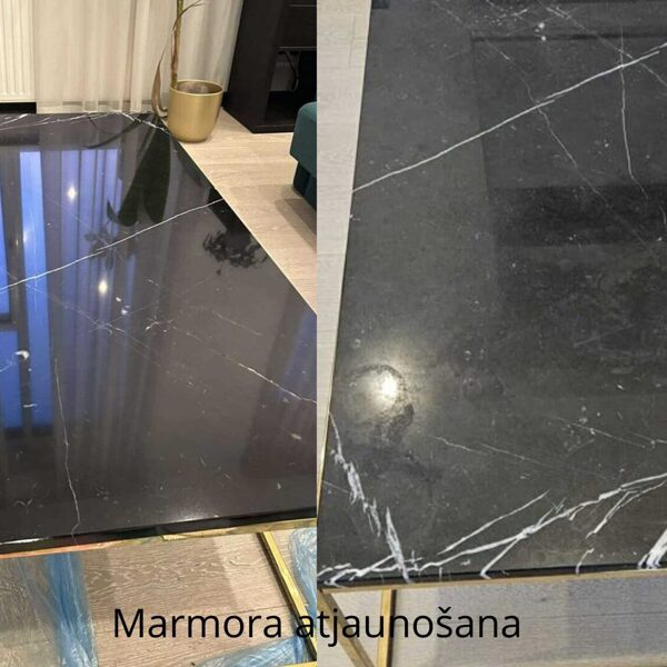 Marmora un granīta virsmu atjaunošana, grīdām un galdiem. Iespējams ar dimanta slīpripām atjaunot marmora un granīta grīdu un virsmu segumus. Ar sauso slīpēšanu, mitro pulēšanu. Ķīmijas iepulēšana virsmā un tā porās, kas pasargā no netīrumu iekļūšanas, pārklāšanās, radot no jauna spīdumu, kristalizācijas procesu. Nebūs jālieto slīpēšanas diski un nav ilgs darba process.