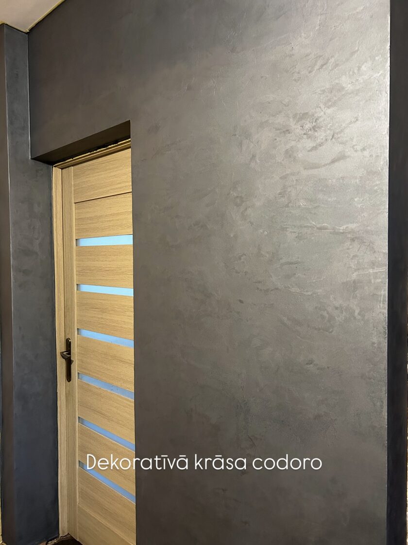 Dekoratīvā krāsa Codoro, viegli uzklājama un izskatās skaisti. Iespējams izmantot vannas istabās, apstrādājot ar divkomponent laku. Ļoti plaša krāsu toņu izvēle pieejama. Iespējams rakstu veidot ar otiņu vai venēcijas ķelli.