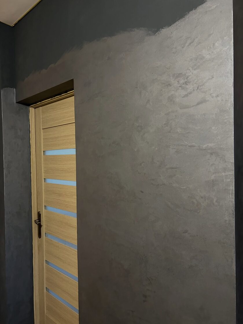 Tiek piedāvāts pakalpojums, interjera dizains ar Venēcijas dekoratīvo apmetumu, apvienojot ar epoksīdu vai laku. Iespējams izmantot arī sienām, griestiem un mēbelēm.