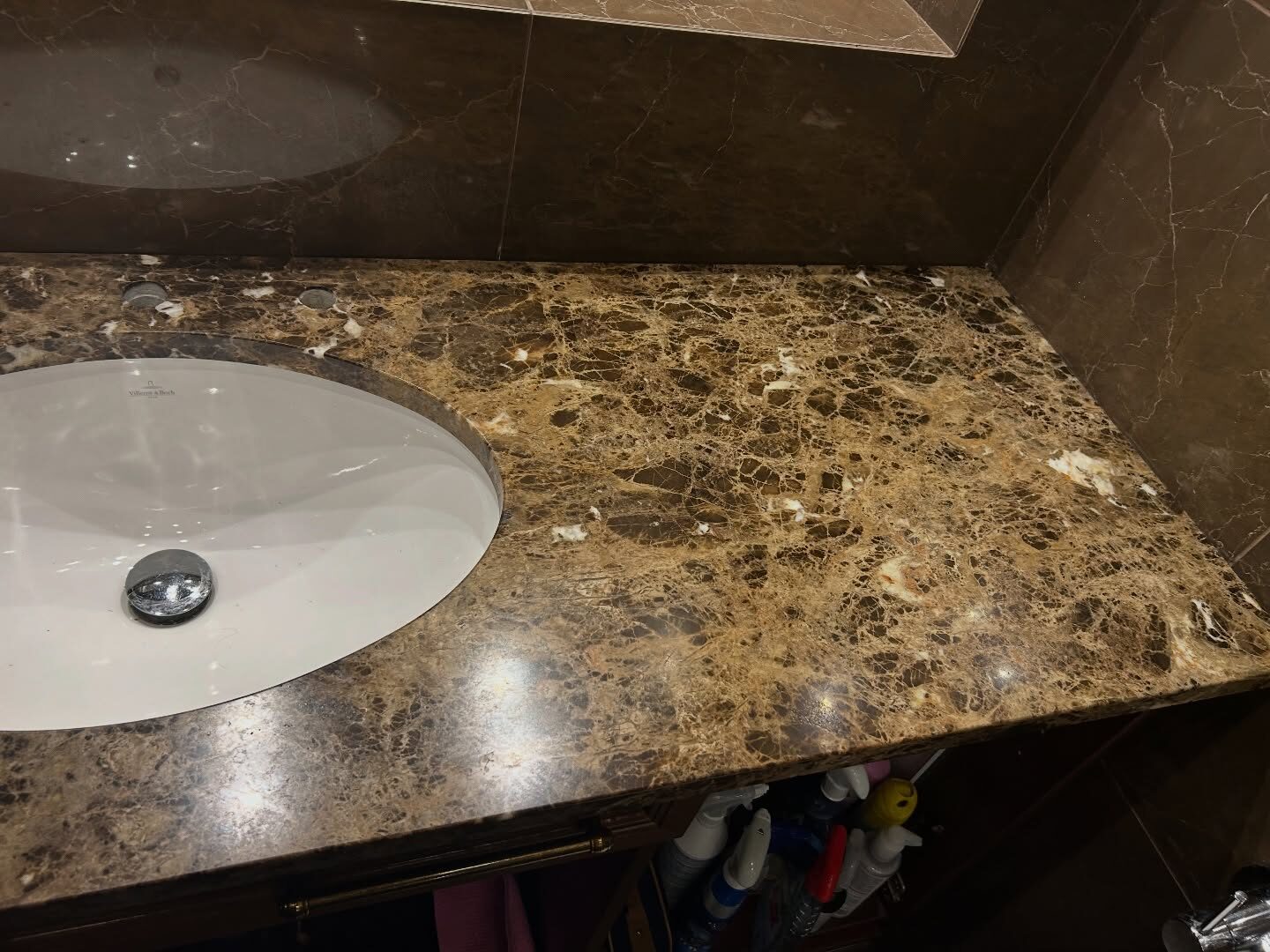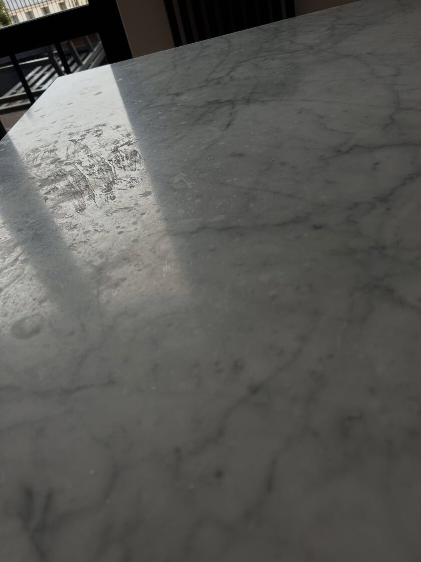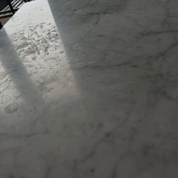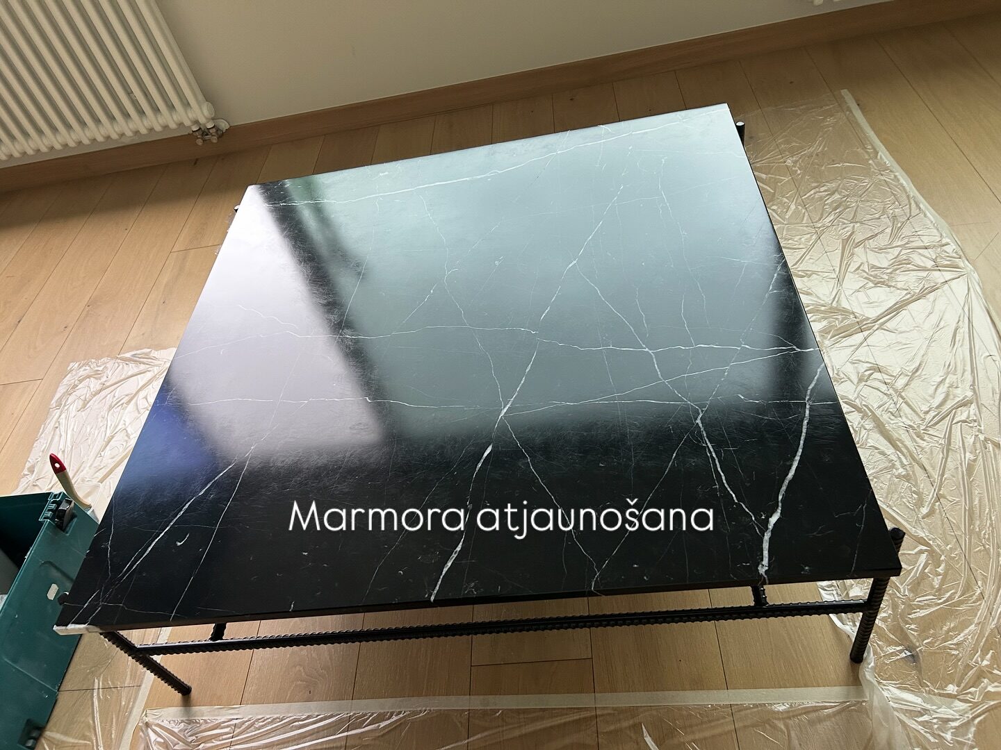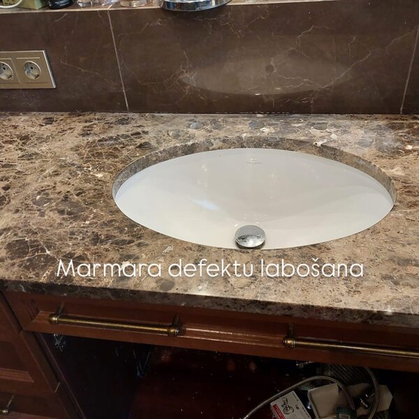 - Zinot marmora darba virsmu bojājumu veidus, plaisas, skrāpējumi, netīrumi porās, traipi no kafijas, karstiem dzērieniem. Virsmas tīrīšana ar sārmainiem tīrīšanas līdzekļiem vai ķīmiju.Var virsma iedzeltēt vai rasties nevienmērīgi pleķi.