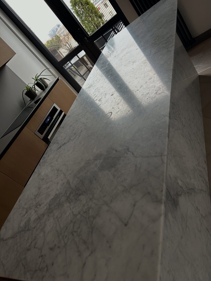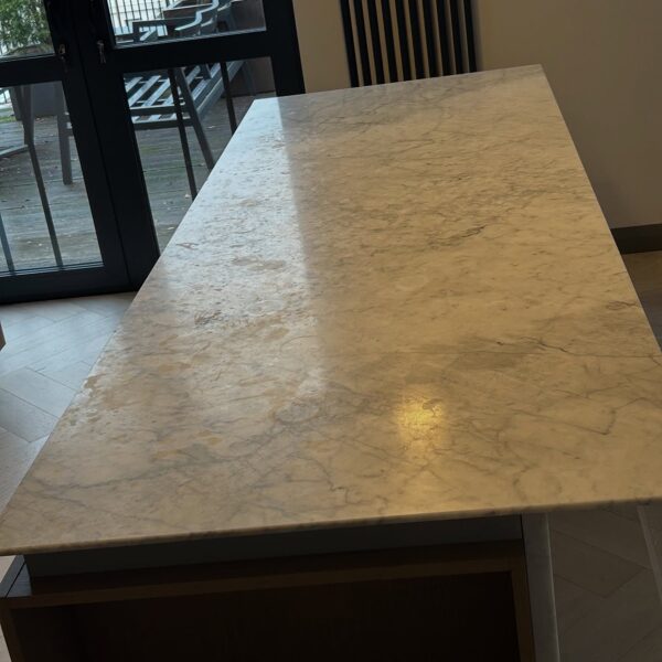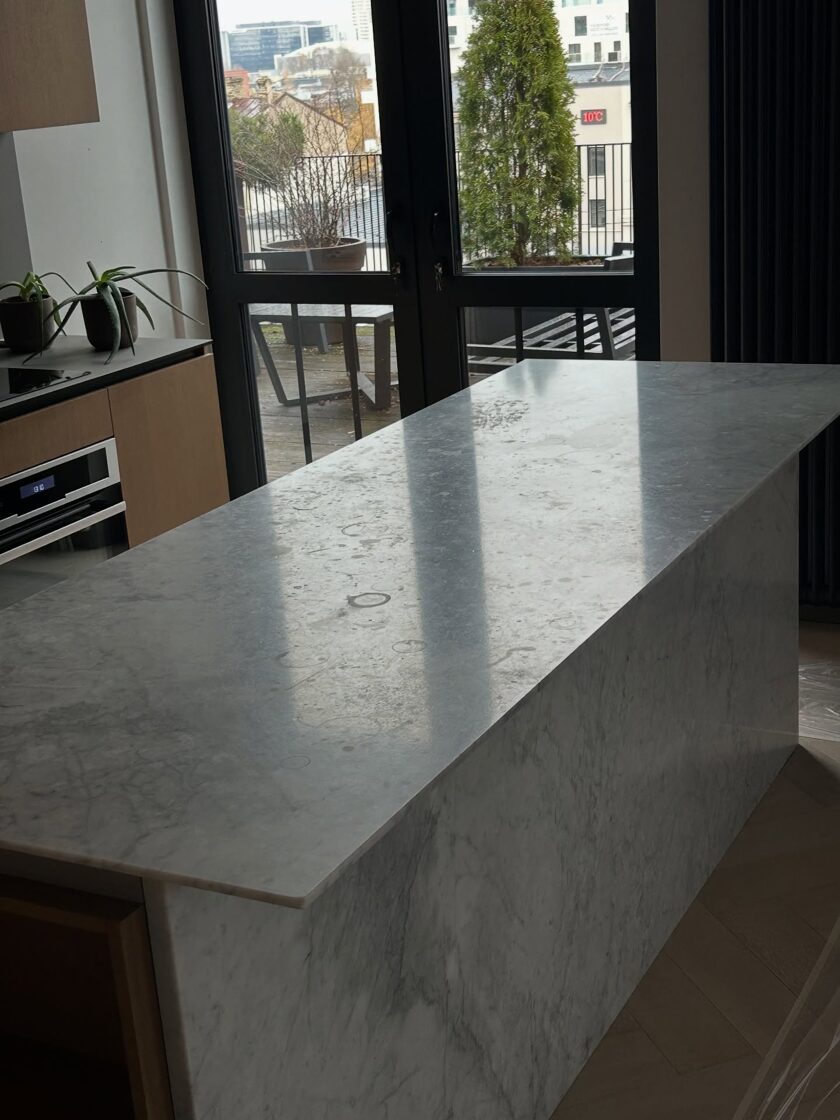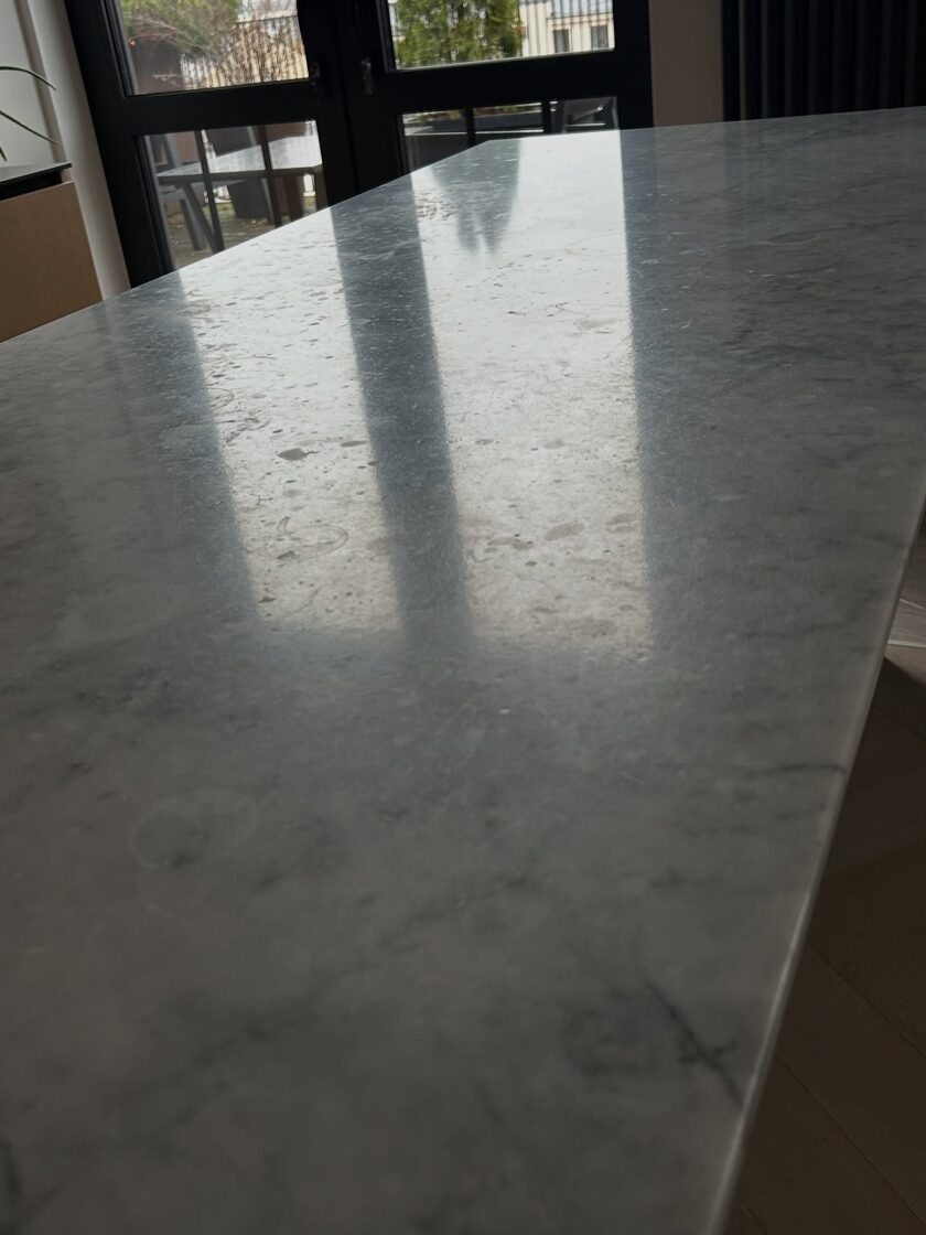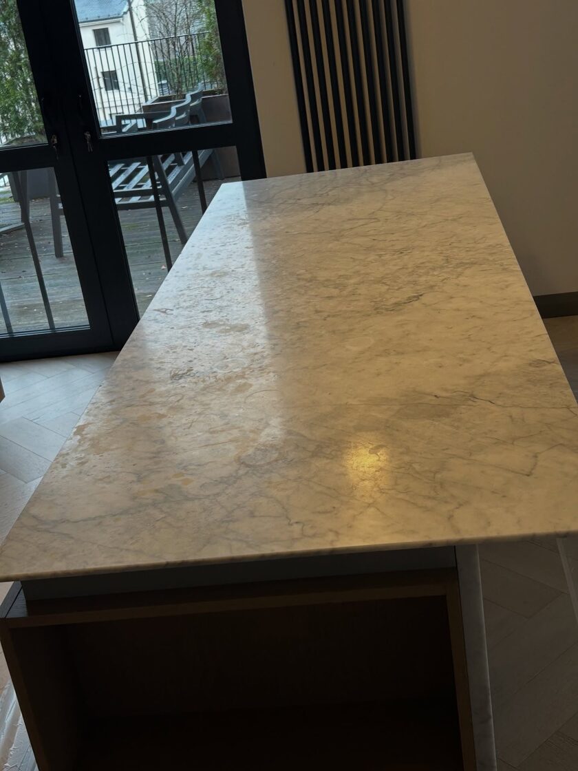 - Zinot marmora darba virsmu bojājumu veidus, plaisas, skrāpējumi, netīrumi porās, traipi no kafijas, karstiem dzērieniem. Virsmas tīrīšana ar sārmainiem tīrīšanas līdzekļiem vai ķīmiju.Var virsma iedzeltēt vai rasties nevienmērīgi pleķi.